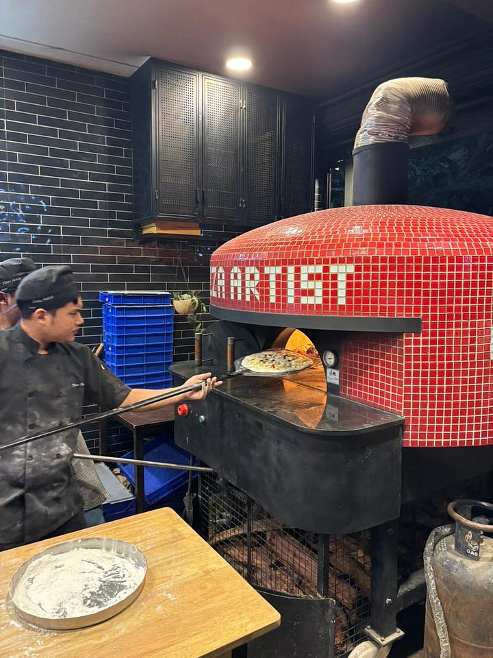 Watching them work feels like a quiet, beautiful performance — no rush, no chaos, just skill and consistency. And then comes that wait — short, but teasing. The aroma arrives first. The slice arrives next. The satisfaction arrives last.